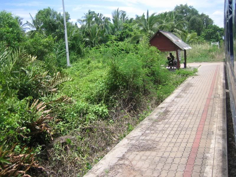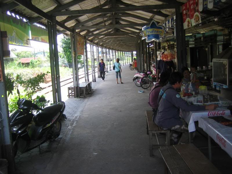 バーンレム駅のホーム。雑貨屋兼食堂が2軒だけあります。