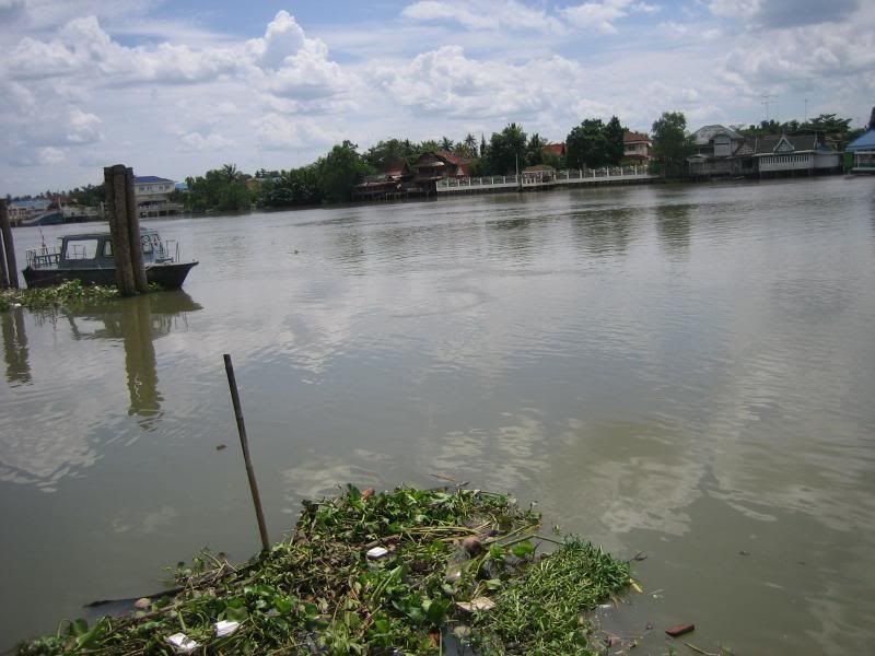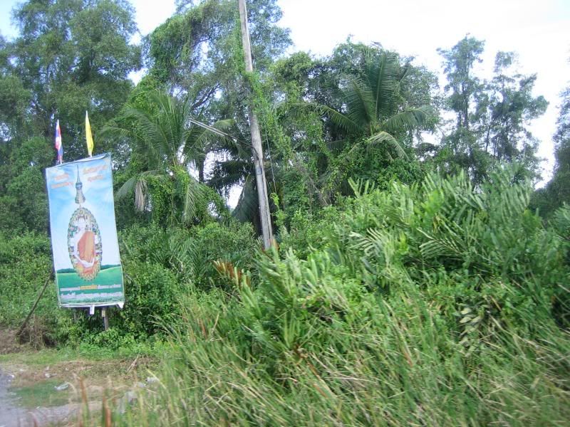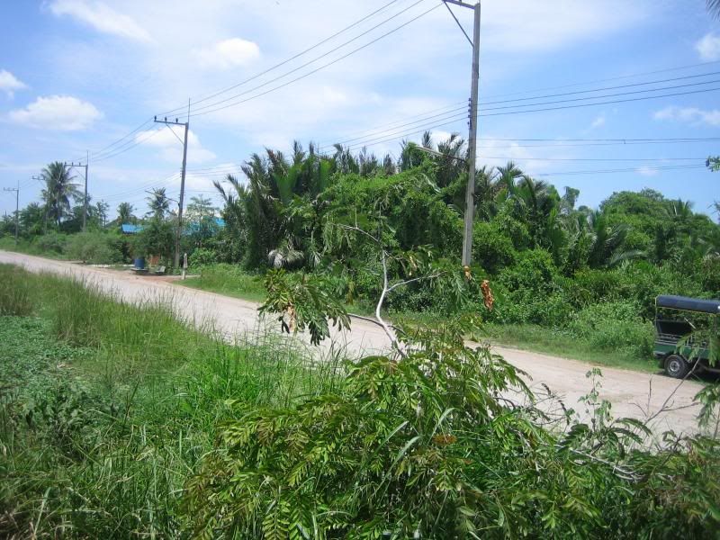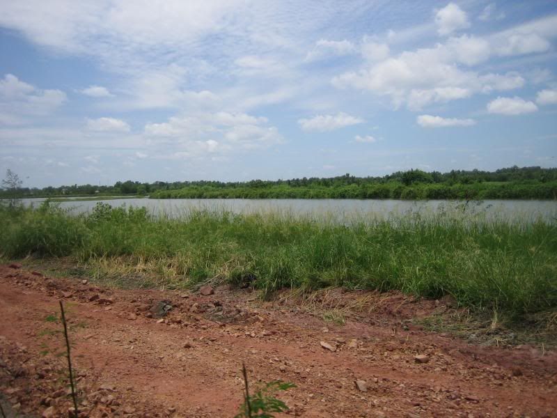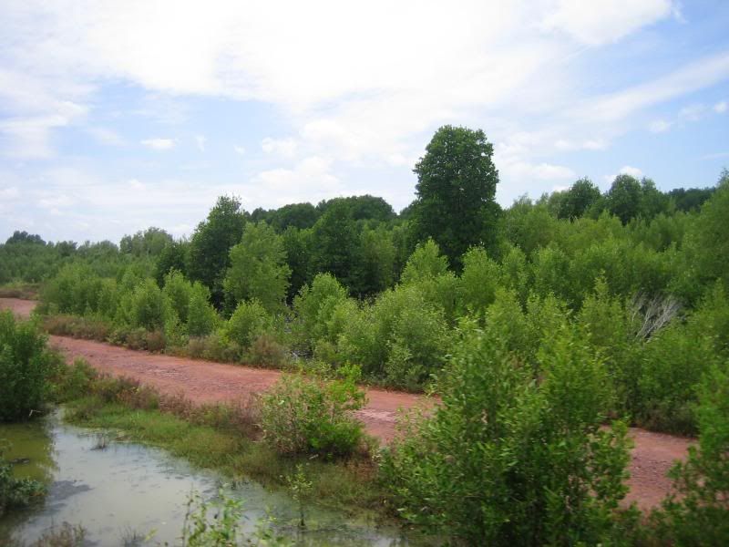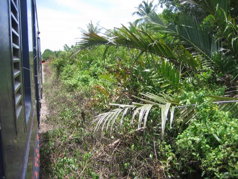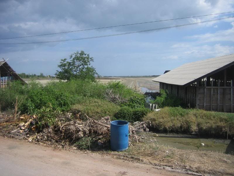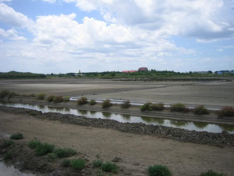 沿線風景。海が近いため、農地はありません。マングローブか塩田かエビの養殖池みたいのが広がっています。