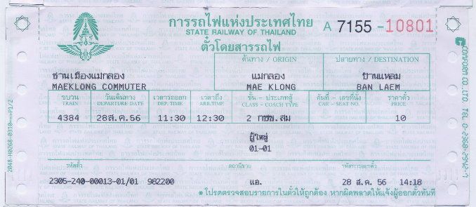 これはキップですが、たった10バーツ(30円)です。これで1時間半くらい乗れます。(笑)