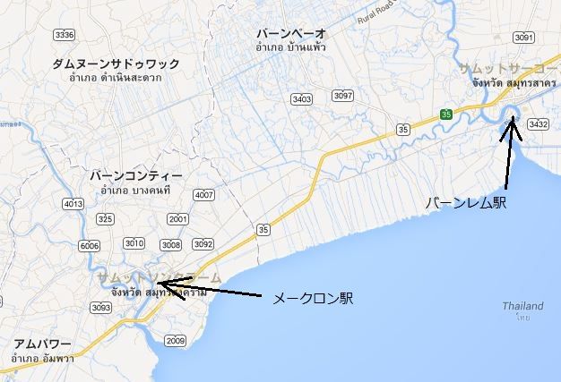 途中のマハーチャイに川があって、ここに橋が無いため、東側と西側で分断されています。この区間は渡し船で対岸に渡る必要があります。