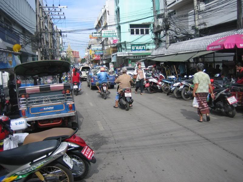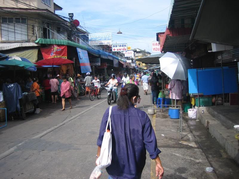 タイ国鉄メークロン(東)線の終点・マハーチャイ駅です。ここを出たら右方向へ進みます。