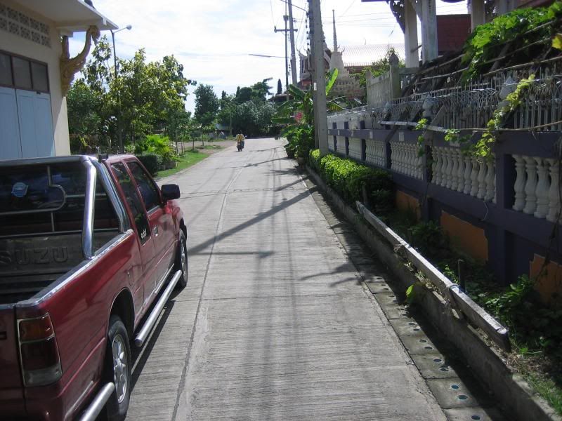 像のあったドームの奥の道路。この道を進みます。(駅側からドーム方向を見ています)