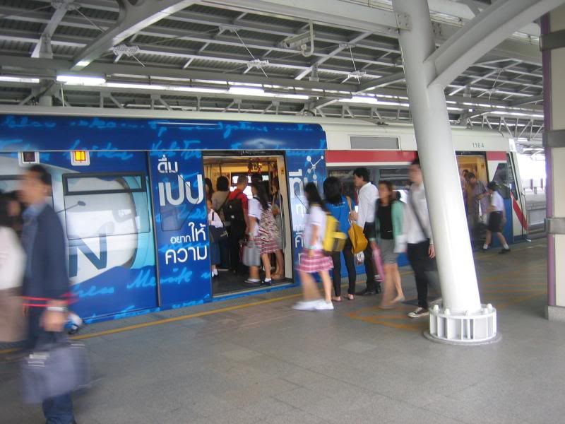 BTSウォンウィエンヤイ駅に到着しました。通勤時間なのでお客さんが多いです。