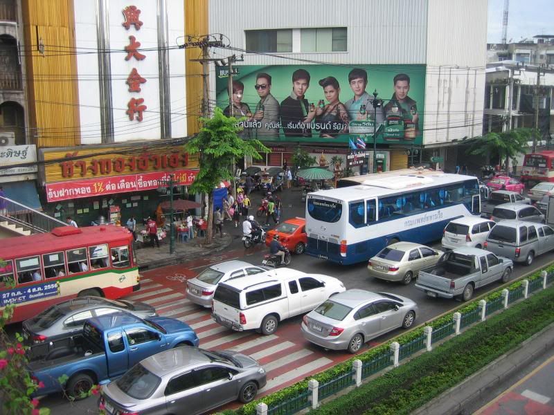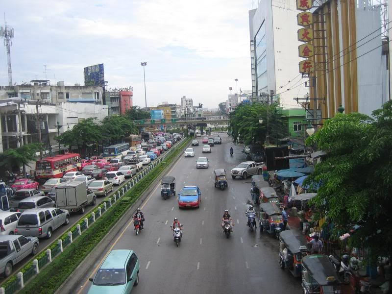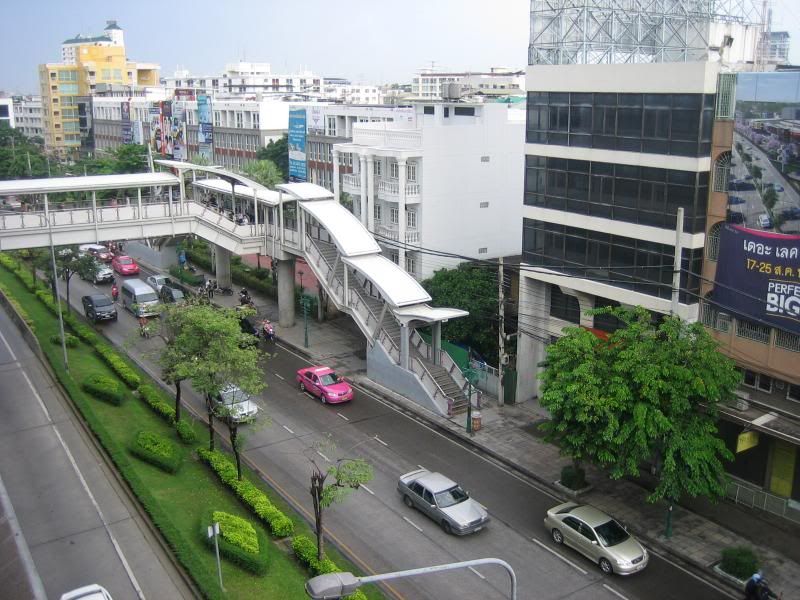 歩道橋の上からタークシン像が見えます。(写真では小さくて見づらいですが)