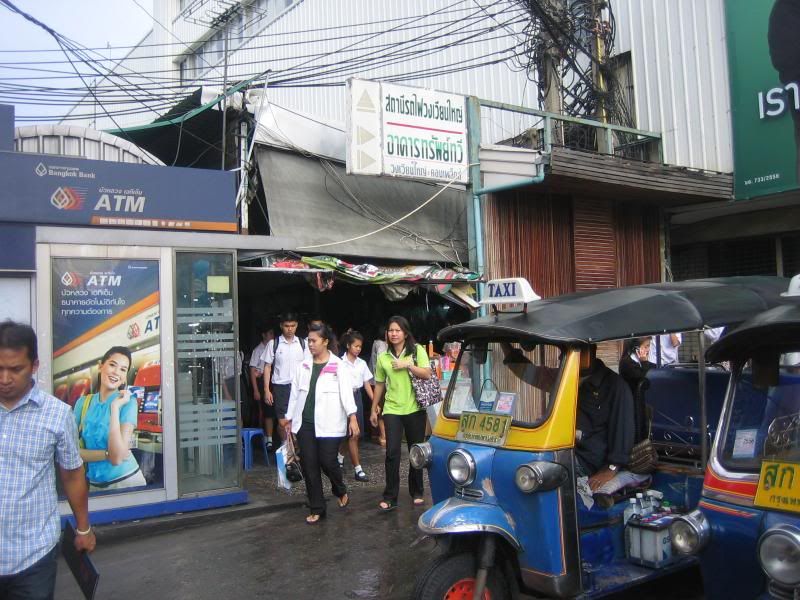 金色の金行(宝飾店)の脇に、トゥクトゥクが停まっていますが、そこがタイ国鉄・ウォンウィエンヤイ駅の入り口です。