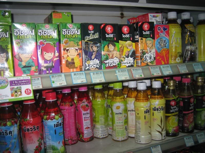 その横に置いてある日本風のキャラが描かれてるのも緑茶飲料みたいですが、なんてブランドでしょうね。(タイ語なので読めません)