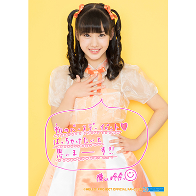 ![]() 横山玲奈オリジナルキーホルダー+L判生写真 ¥ 1,200 バースデーを記念したアクリルキーホルダー!L判生写真付き ●後日通販あり | ![]() 横山玲奈マイクロファイバータオル ¥ 3,700 サイズ:約90cm×40cm ●後日通販あり | ![]() L判生写真4枚セット ¥ 600 ●後日通販あり |
