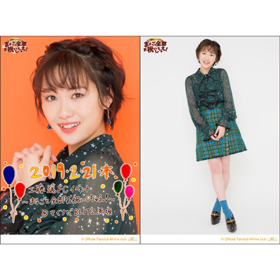 ![]() イベントバッグ ¥ 300 | ![]() 【会場限定】まるごとお祝いセット ¥ 13,500 【セット内容】 ・Tシャツ ・イベントマフラータオル ・アクリルスタンドキーホルダーA ・アクリルスタンドキーホルダーB ・2L判生写真4枚セットA ・2L判生写真4枚セットB ・A5ワイドサイズ生写真2枚セット ・L判生写真4枚セットA ・L判生写真4枚セットB ・イベントバッグ ☆セット購入特典L判生写真 ※通信販売はございません。 | ![]() 工藤遥コレクションL判生写真 (ミニクリアファイル付・全5種) ¥ 500 ミニクリアファイル付きコレクション生写真全5種 ☆数量限定☆コレクション生写真はどんな写真が出るかは開けてからのお楽しみ! 種類は選べませんので、予めご了承下さい。 |