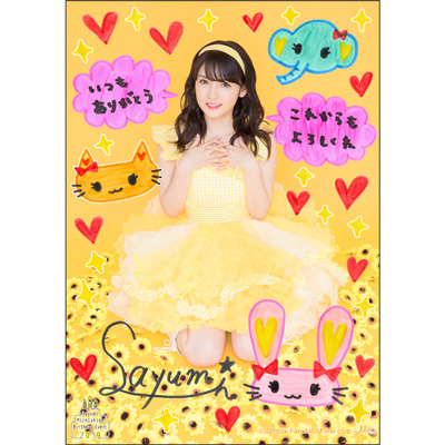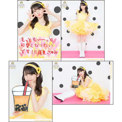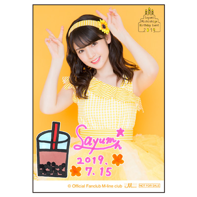 ![]() コレクション生写真(全5種) ¥ 500 ミニクリアファイル付きコレクション生写真全5種 ☆数量限定☆どんな“さゆみん”が出るかは開けてからのお楽しみ!! (種類は選べませんので、予めご了承下さい。) | ![]() A4サイズシートステッカー ¥ 1,600 過去のFCイベントやツアー、さらに新しく直筆で作成したフォトプロップスをステッカーにした全18パターンのカワイイステッカー! ●後日通販あり | ![]() 2L判生写真4枚セット ¥ 1,000 背景のテーマは「タピオカ」♡ 直筆メッセージプリント入り ●後日通販あり |