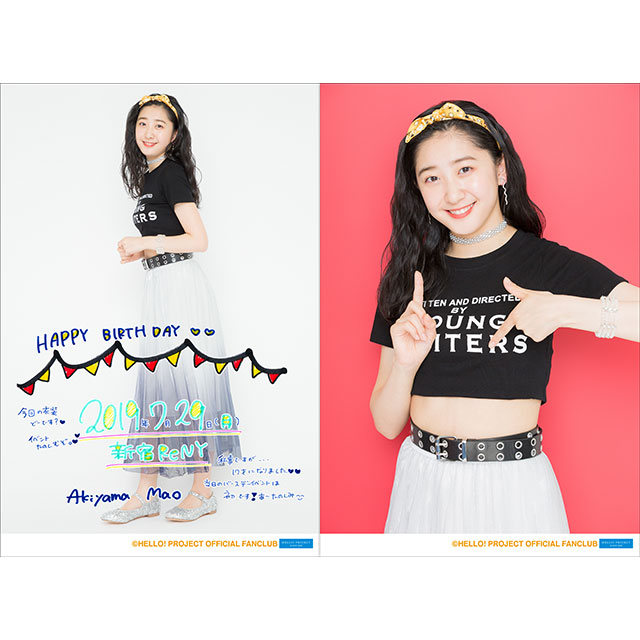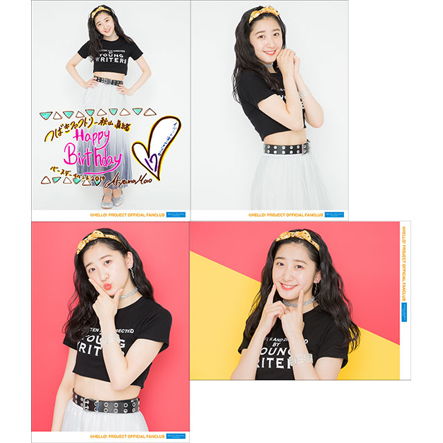 ![]() 秋山眞緒バースデーTシャツ ¥ 3,000 サイズ:Mサイズ、Lサイズ、XLサイズ ●後日通販あり | ![]() A4サイズ生写真 ¥ 1,500 ●後日通販あり | ![]() 2L判生写真4枚セット ¥ 1,000 ●後日通販あり |