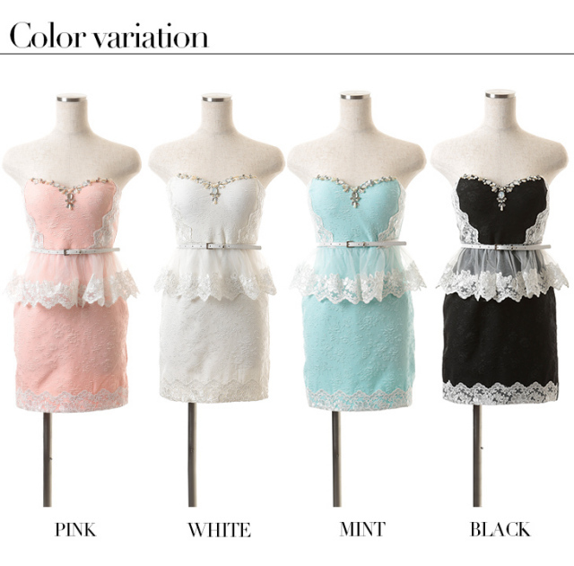 レースをたっぷりあしらったペプラムミニドレス。 ペプラム&ベルトでスタイルUP☆パーティーにぴったり♪