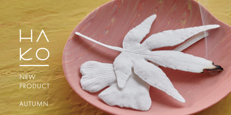葉っぱモチーフのお香「HA KO」が秋冬の季節を感じさせる。
