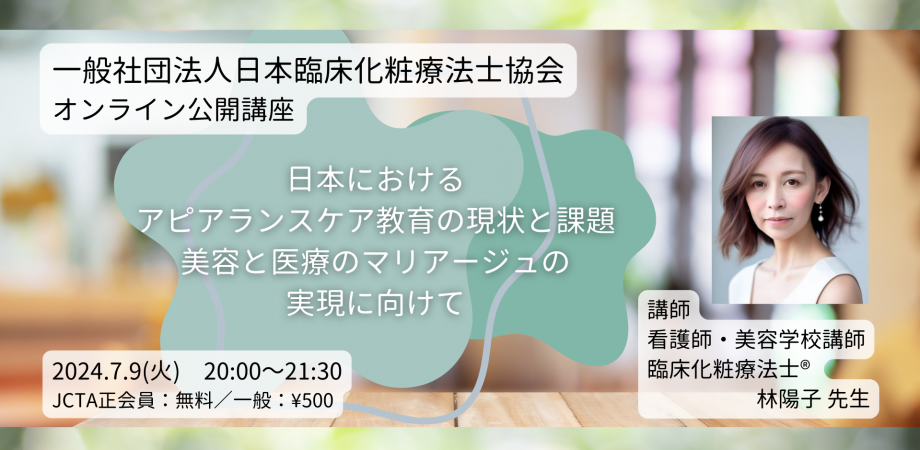 JCTA日本臨床化粧療法士協会では、テーマごとに講師をお招きし定期的にオンライン公開講座を実施しております。