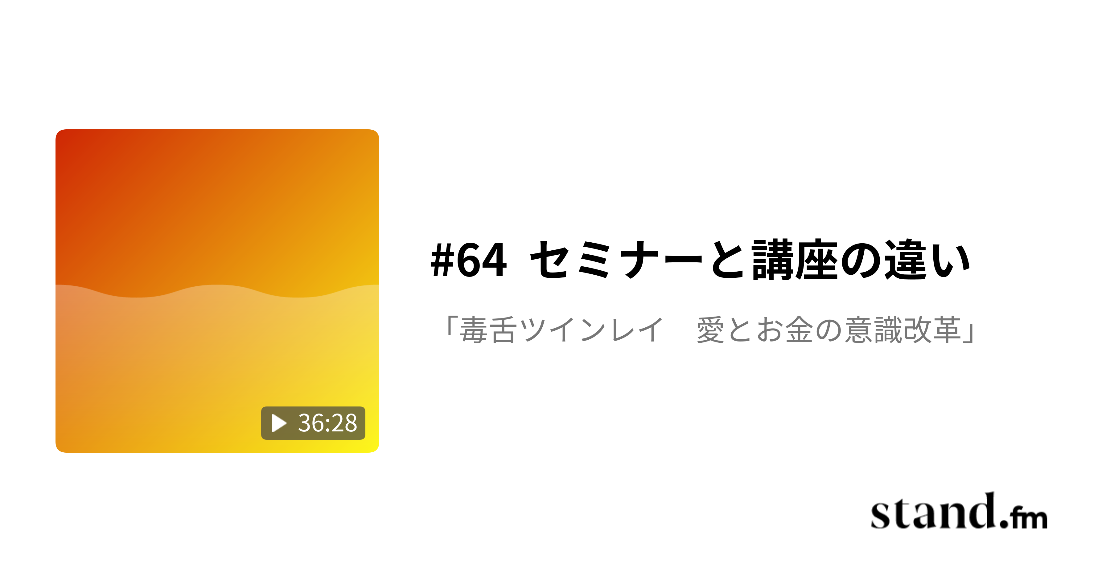 スタンドエフエムで、愛とお金の意識改革64回目を配信しました。