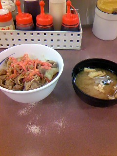 松屋は他の牛丼屋と違って、味噌汁が無料で付いてくるから、