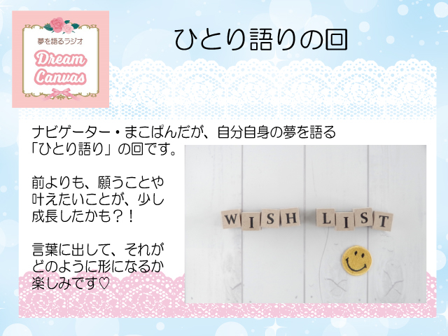 #敦賀FM #リスラジ #夢を語るラジオ #DreamCanvas #ひとり語り #ナビゲーターまこぱんだ