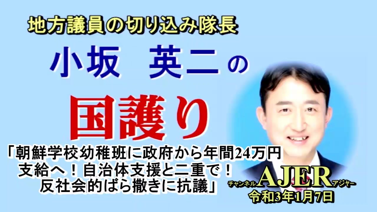「朝鮮学校幼稚班に政府から年間24万円支給へ!自治体支援と二重で!反社会的ばら撒きに抗議!(前半)」小坂英二 AJER2021.1.7(1)
