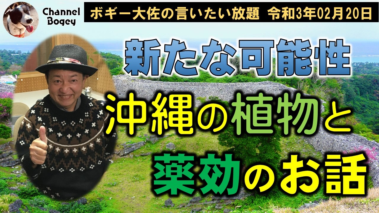 本日の放送は、沖縄の新たな可能性、沖縄の植物と薬効についてです。詳細は動画をご覧ください。MC #ボギーてどこん R03/02/22,23時~プレミア公開です。