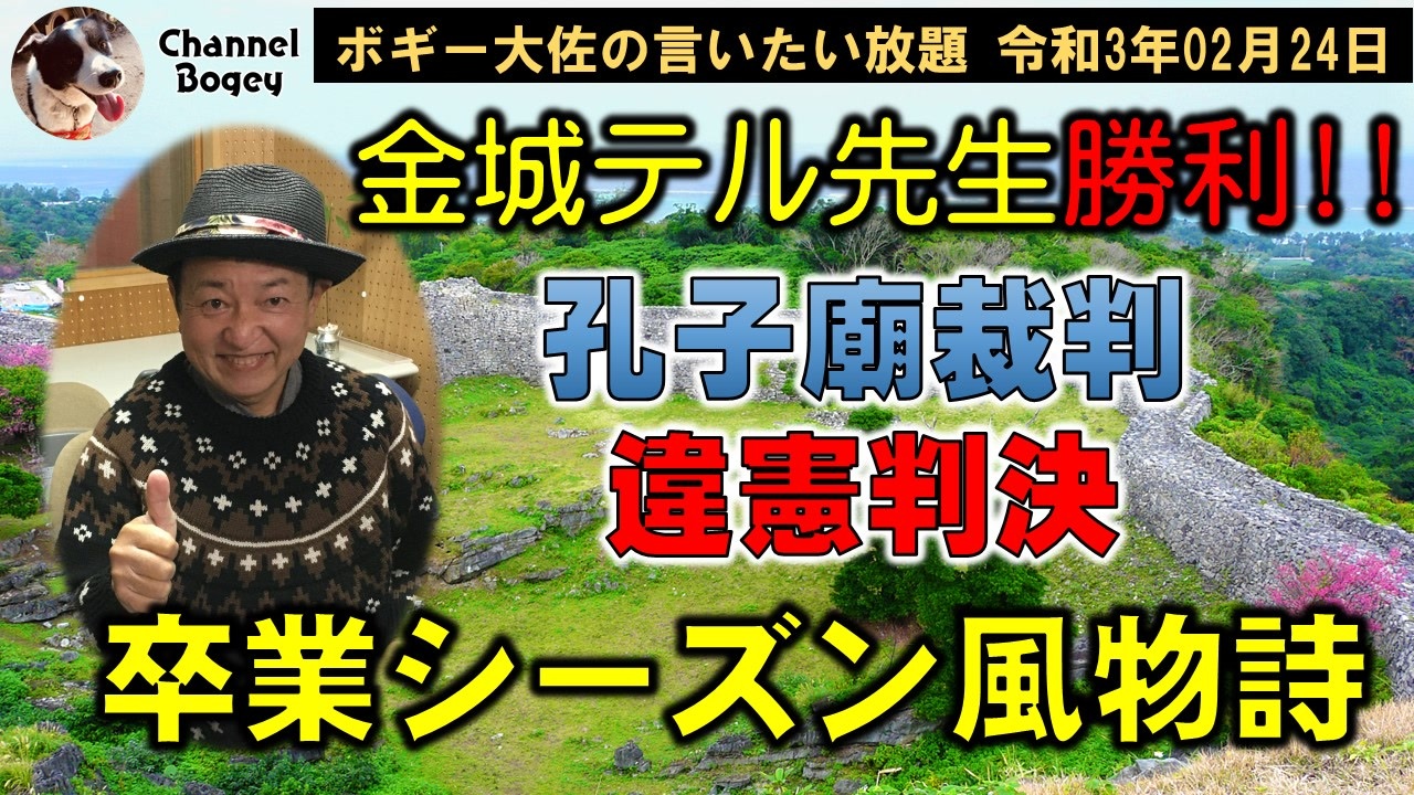 孔子廟裁判違憲判決!金城テル先生全面勝訴! ボギー大佐の言いたい放題 2021年02月24日 21時頃 放送分