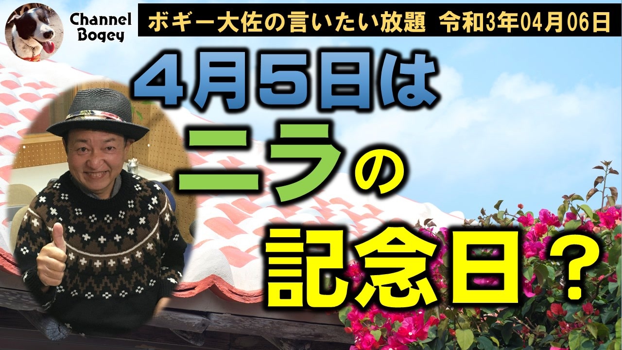 本日の放送は、4月5日はニラの記念日と昨日に引き続き善意についてのお話です。詳細は動画をご覧ください。MC #ボギーてどこん