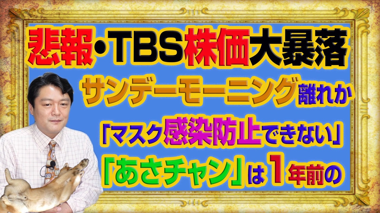 #1052 悲報・TBS大暴落は「サンデーモーニング離れ」か「ガッキーショック」か。「マスク感染防止できない」と「あさチャン」は1年前の話題|みやわきチャンネル(仮)#1202Restart1052