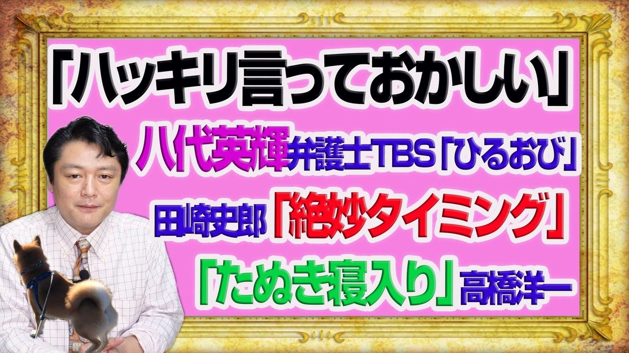#1097 「ハッキリ言っておかしい」八代英輝弁護士TBS「ひるおび」。田崎史郎「絶妙なタイミング」の「たぬき寝入り」と高橋洋一|みやわきチャンネル(仮)#1247Restart1097