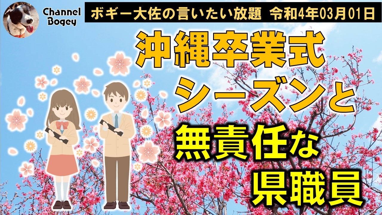 本日の放送は、沖縄の卒業式シーズンと無責任な県職員についてです。詳細は動画をご覧ください。MC #ボギーてどこん