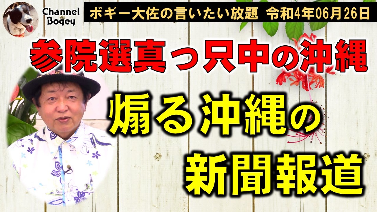 本日の放送は、 #参議院選挙 真っ只中の #沖縄 にて煽る沖縄の新聞報道です。詳細は動画をご覧ください。MC #ボギーてどこん