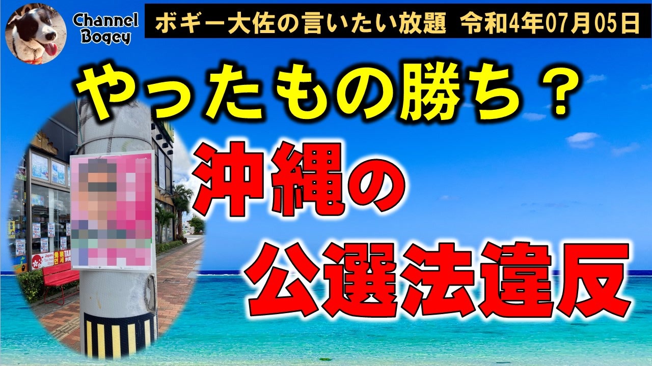 本日の放送は、やった者勝ち?を許すな!公選法特区沖縄、落ちるところまで落ちた人です。詳細は動画をご覧ください。MC #ボギーてどこん