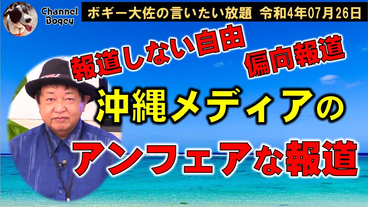 本日の放送は、アンフェアな沖縄メディアの報道についてです。詳細は動画をご覧ください。MC #ボギーてどこん