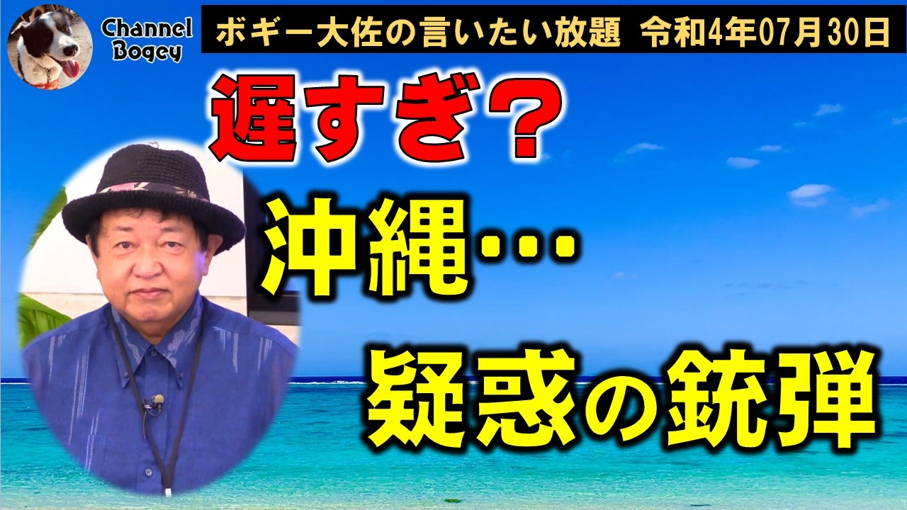 本日の放送は、捜査遅すぎ?沖縄疑惑の銃弾です。詳細は動画をご覧ください。MC #ボギーてどこん