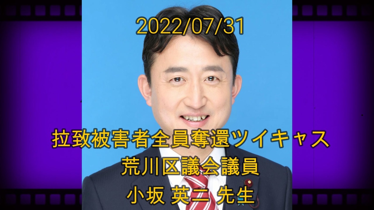 拉致被害者全員奪還ツイキャス 2022年07月31日放送分 荒川区議会議員 小坂 英二 先生 コメント無し動画