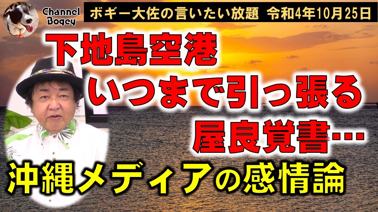 本日の放送は、 #下地島空港 、いつまで引っ張る #屋良覚書 と最近どんどん変な方向に向かう #沖縄メディア です。詳細は動画をご覧ください。MC #ボギーてどこん