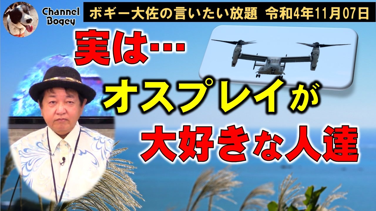 本日の放送は、実は #オスプレイ が大好き?な人達と #ボギーてどこん さんがプンプンした人達についてです。詳細は動画をご覧ください。MC #ボギーてどこん