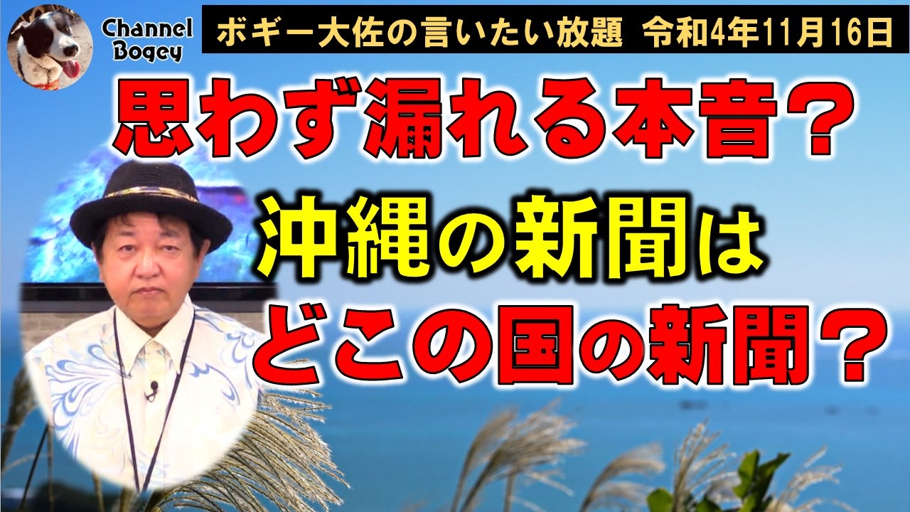沖縄の新聞はどこの国の新聞社? ボギー大佐の言いたい放題 2022年11月16日 21時頃 放送分
