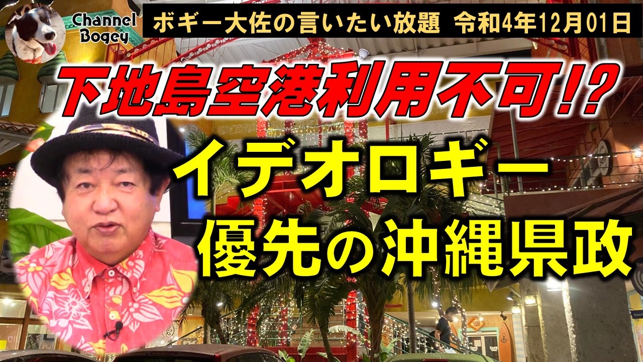 本日の放送は、下地島空港利用不可!結局観光よりもイデオロギー優先の沖縄県政です。詳細は動画をご覧ください。MC #ボギーてどこん