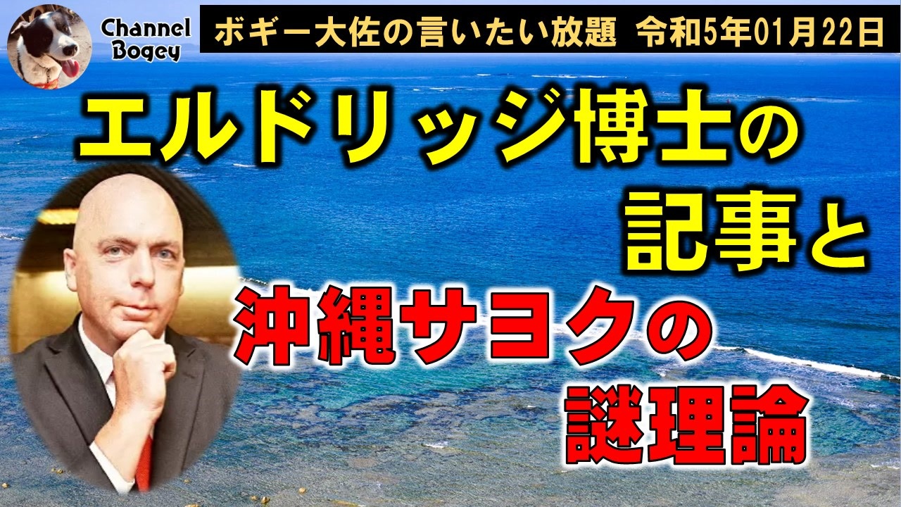 本日の放送は、沖縄サヨクの謎理論とロバート・D・エルドリッジ博士の記事についてです。詳細は動画をご覧ください。MC #ボギーてどこん