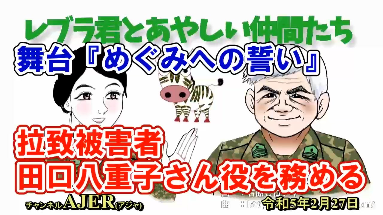 レブラ君とあやしい仲間たち 「舞台『めぐみへの誓い』拉致被害者田口八重子さん役を務める」荒木和博&葛城奈海 AJER2023.2.27(9)