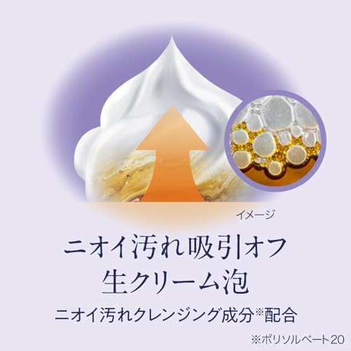 ニオイ汚れ吸引オフ生クリーム泡でまさつレスに洗え、ニオイ汚れが気になる大人の肌にも使えるというアイテムです![]()
