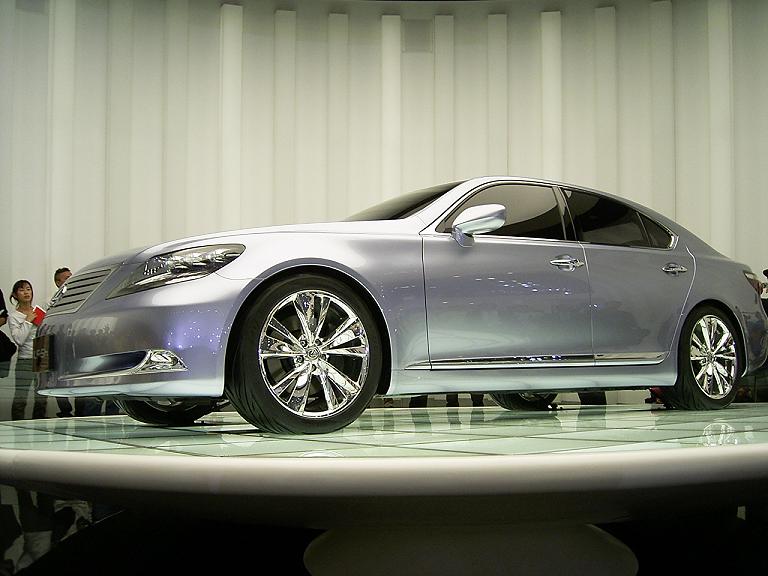 トヨタブース。レクサスのコンセプトカーがやっぱり大人気。V8エンジンのハイブリッドカー。
