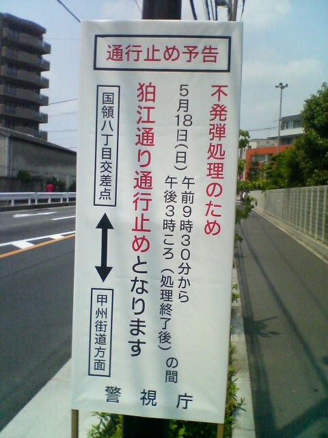 ◎不発弾情報 午前11時36分,自衛隊による不発弾処理作業が無事終了し,市長から安全宣言が発せられました。これに伴い,午前11時36分,警戒区域,交通規制が解除されました。しかし,京王線の運転再開には今しばらく時間がかかります。運転が再開されましたらこのメールでお知らせいたします。(注)返信メールは受け付けておりません。