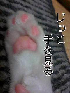 私の肉球、ビンク色。