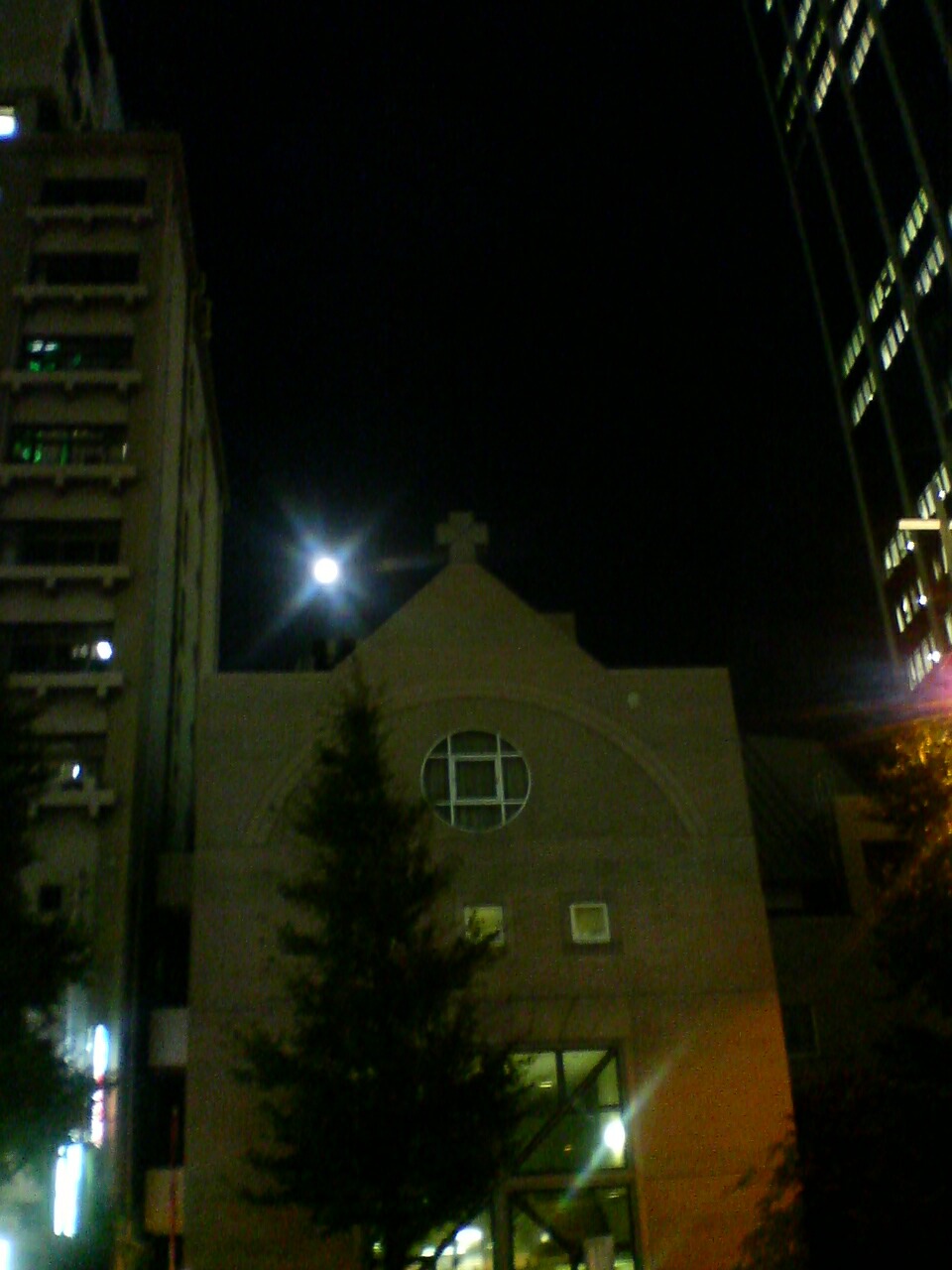 教会と月がなんともイイ感じなので