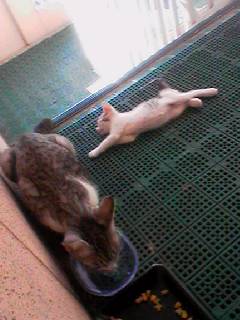去年自転車置き場で生まれたネコ、はなが最近子供を生みました。私が帰ってくると、いつも玄関先で待っているので、餌をやっていたらすっかり居ついてしまったのです。