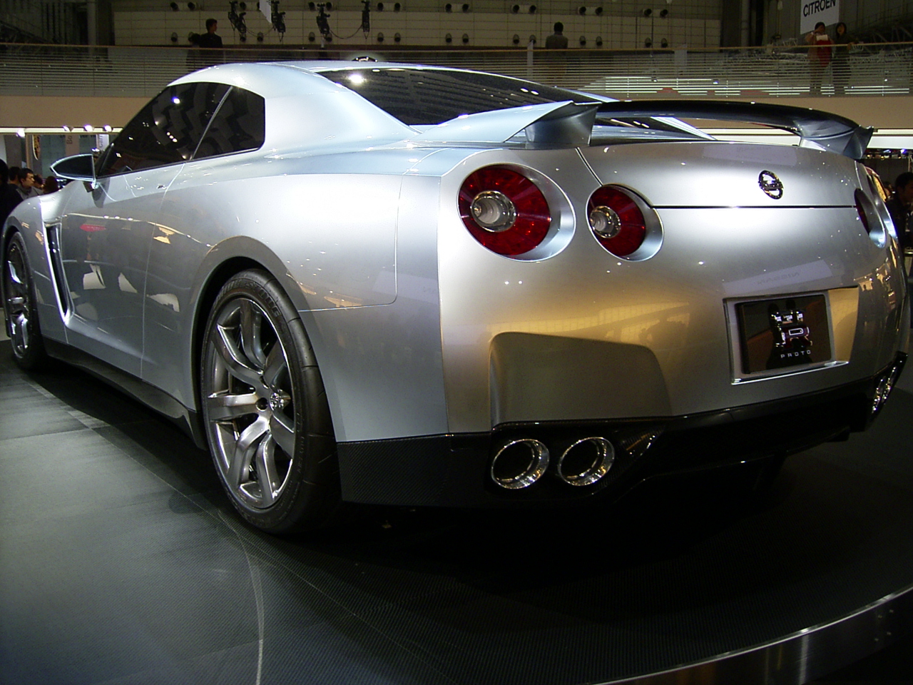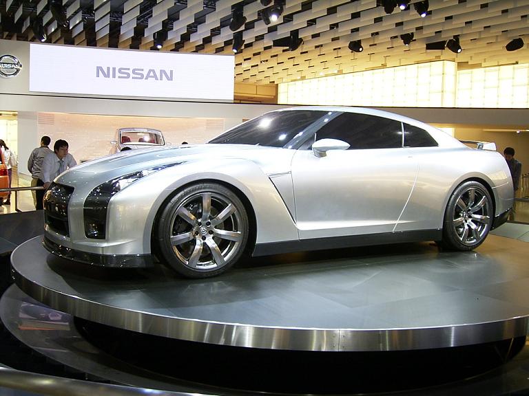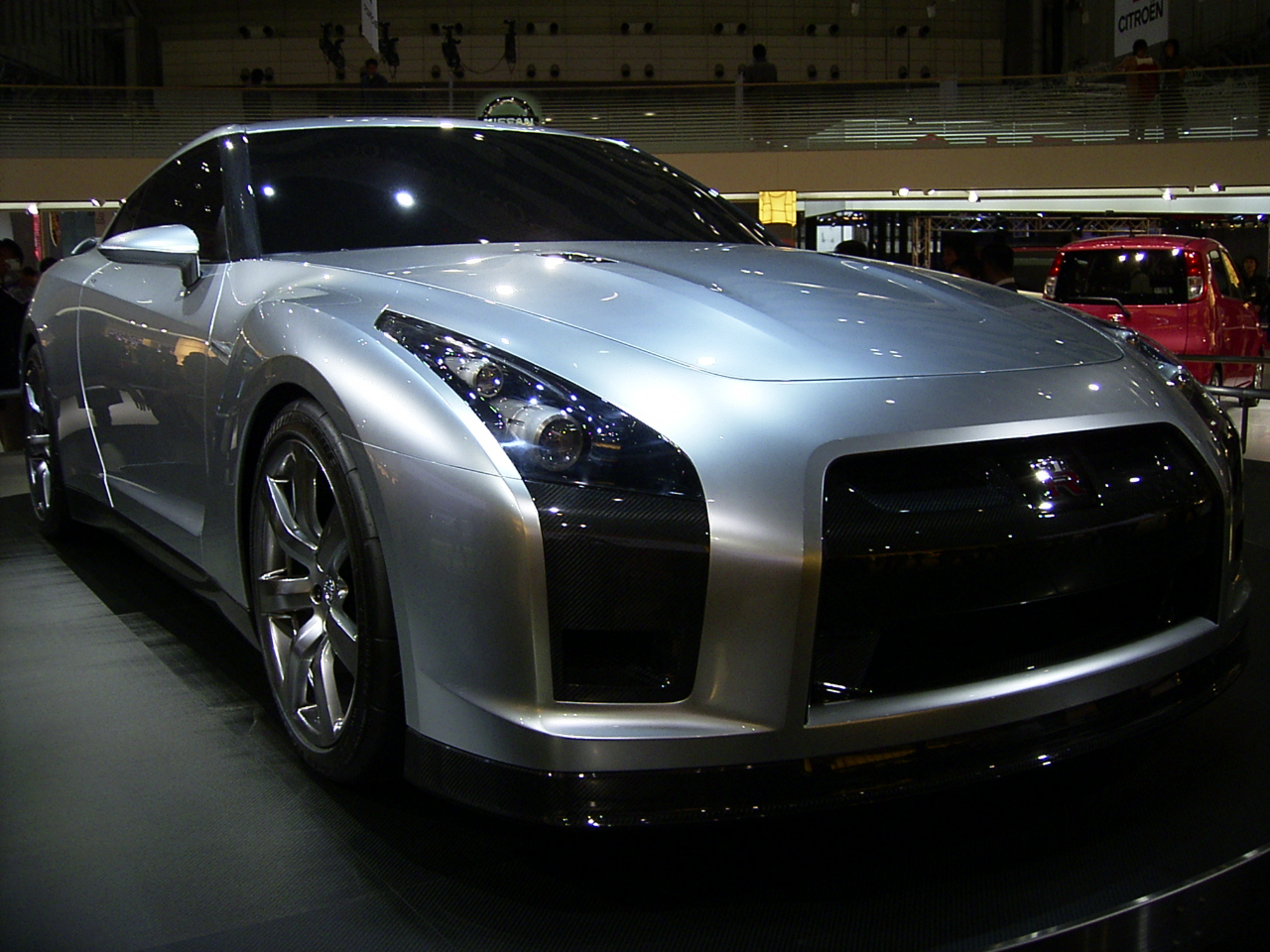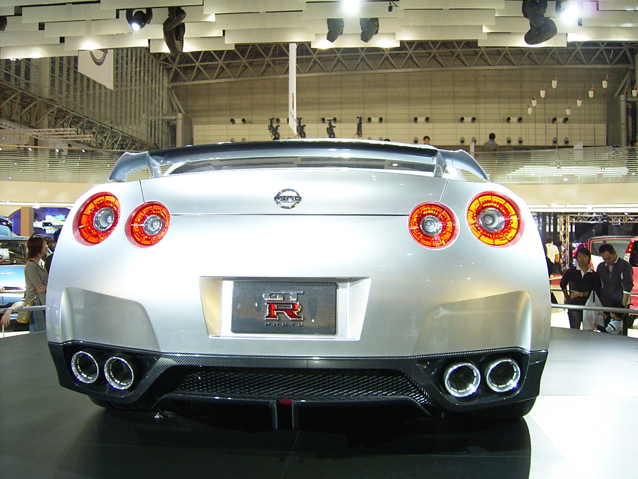 日産GTR。で、出ましたーって感じでとにかくカッコイイ。テールランプはかつてのスカイラインGTRを彷彿とさせる。02年に生産中止されて以来、07年にほぼこのスタイルで復活するようです。