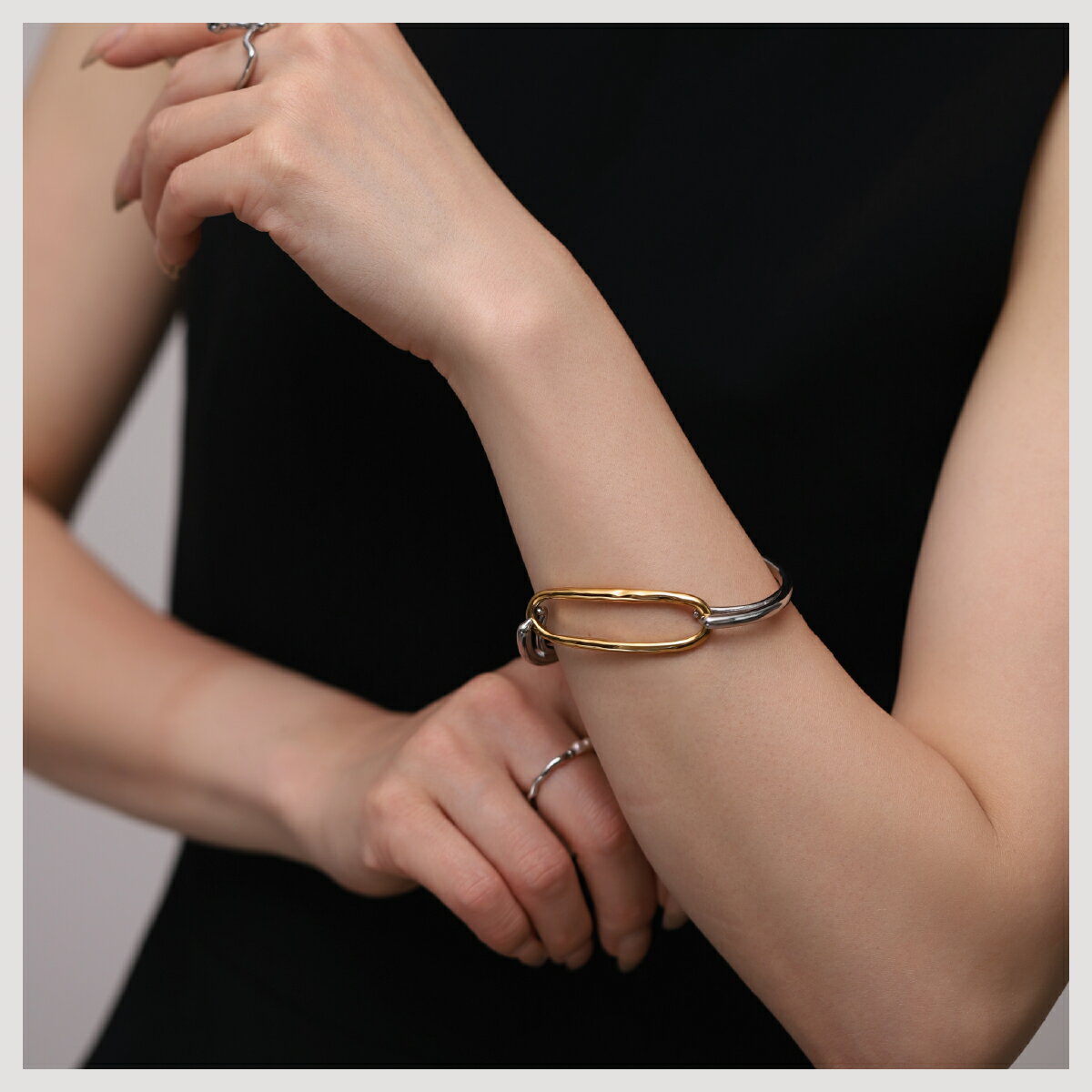 ゴールド×シルバーのバイカラーだから重ね付けしても可愛い👏