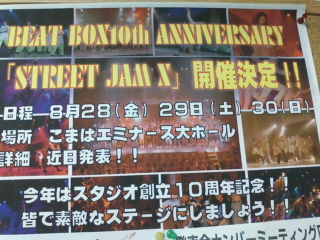 去年と同じく『駒場エミナース』というところでやるのですが、BEAT BOX(ダンススクール)が10周年で、しかも駒場エミナースでやるのは最後みたいなのですが、そんな大切な時にAKEMIナンバーは一部のトリでありまぁ~す