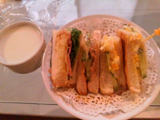 私の手作りサンドイッチと杏仁豆腐どーでしたぁ