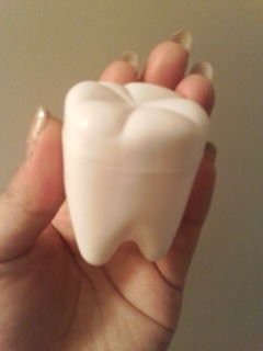 私の歯はリンパに接触してたみたいですけど、まっすぐキレイに生えてたので、抜けた歯を見たら写真の置物の歯と同じ形