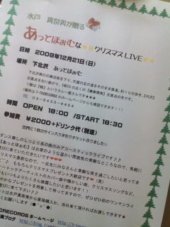 12月21日(日)は、下北沢の【あっとほぉむ】 でワンマンライブやりますので、一緒にクリスマスパーティーしましょう♪♪